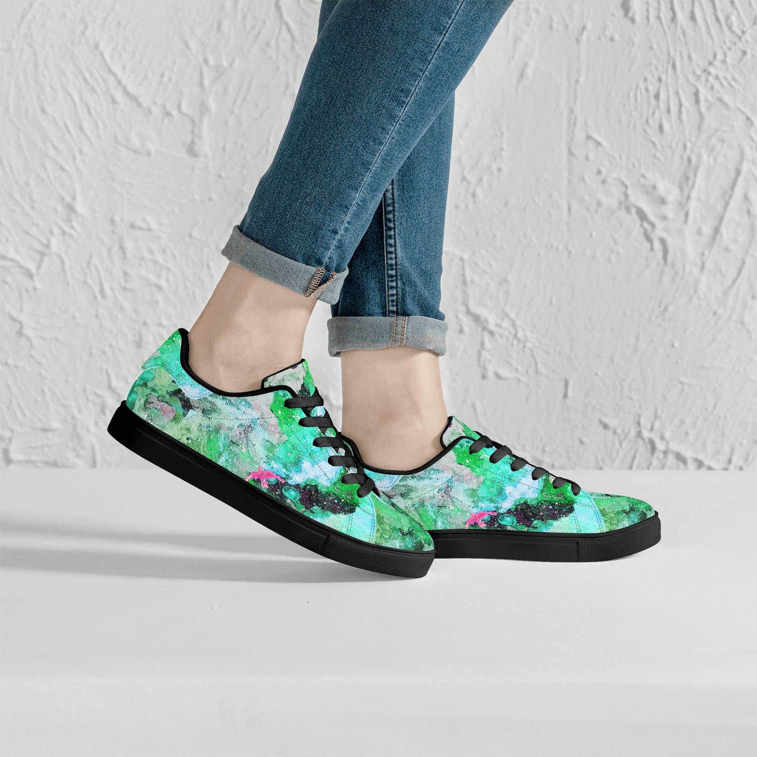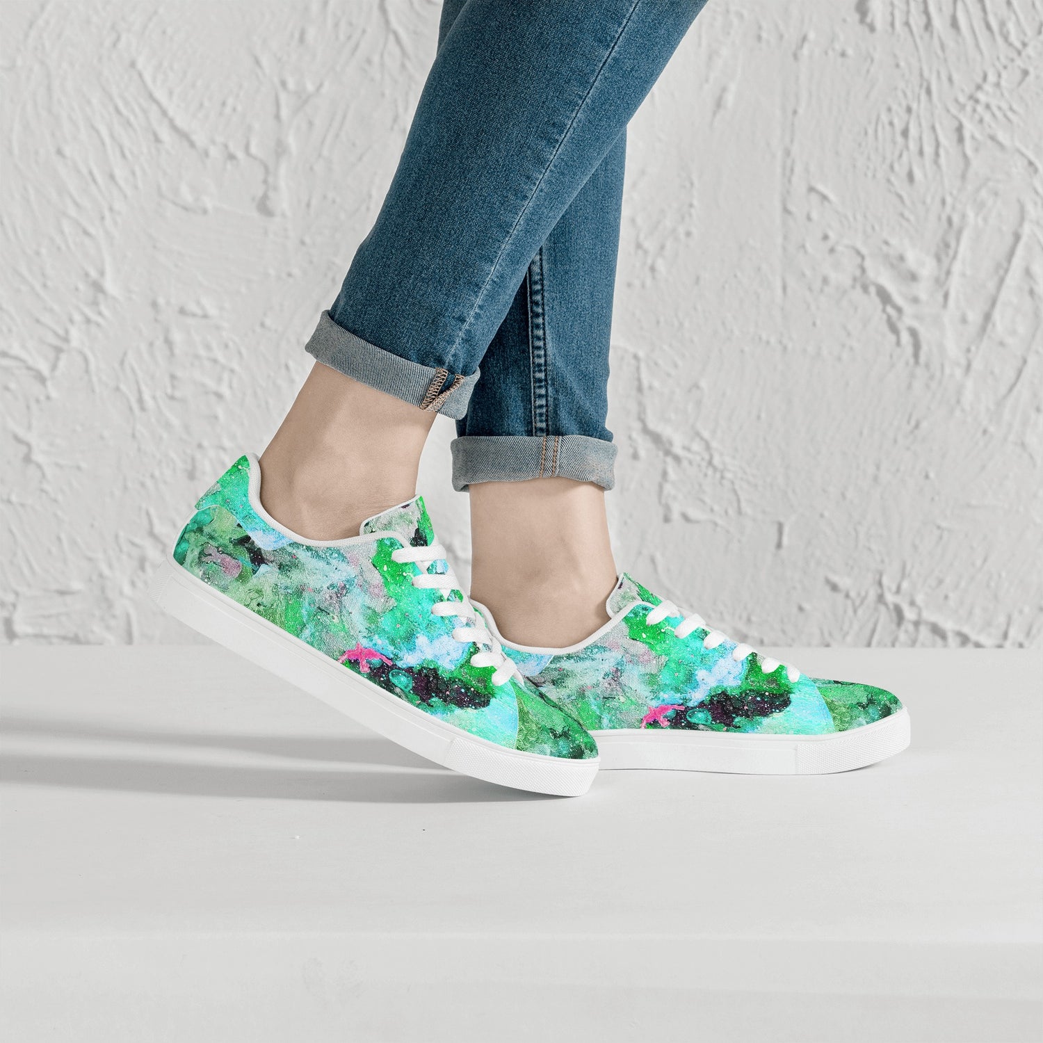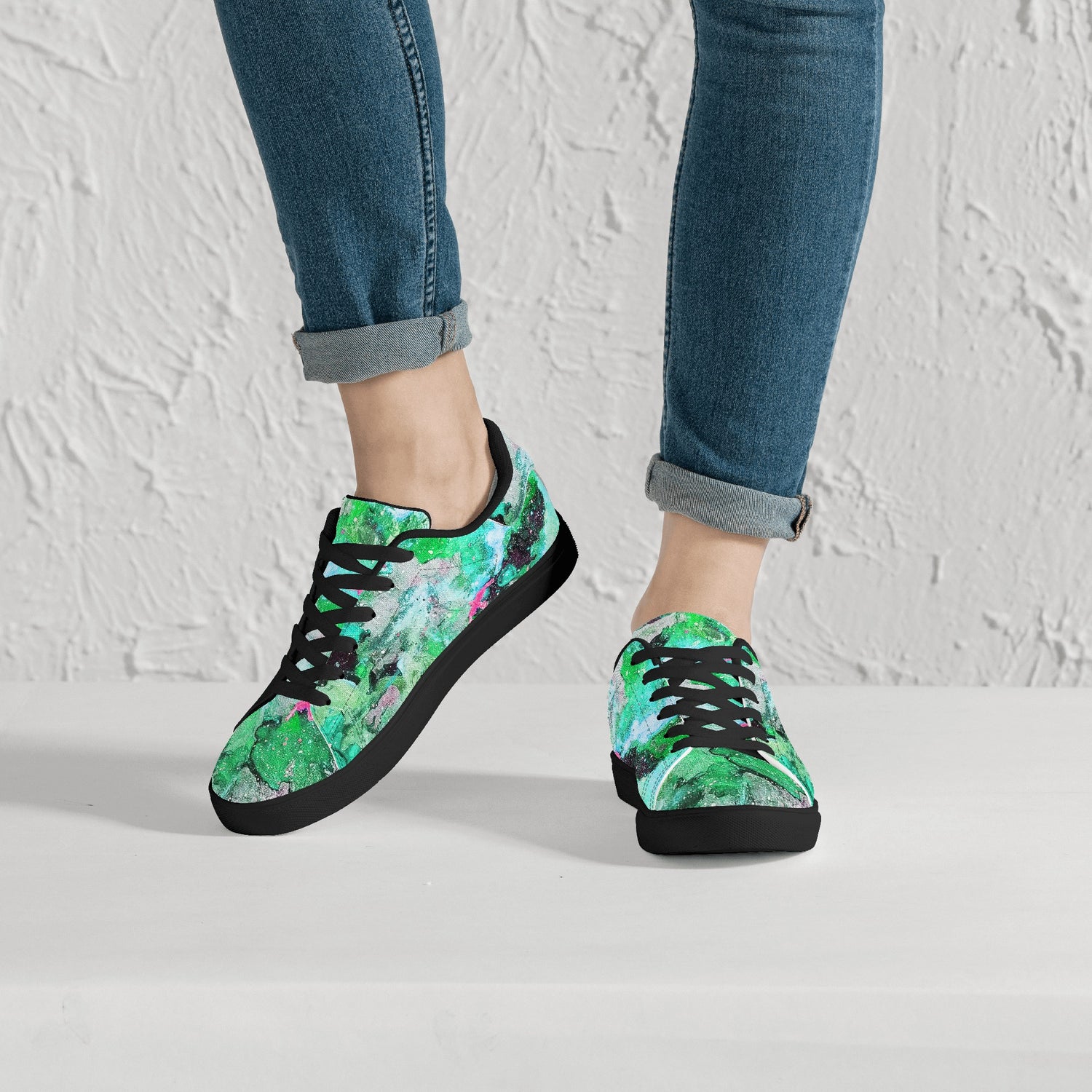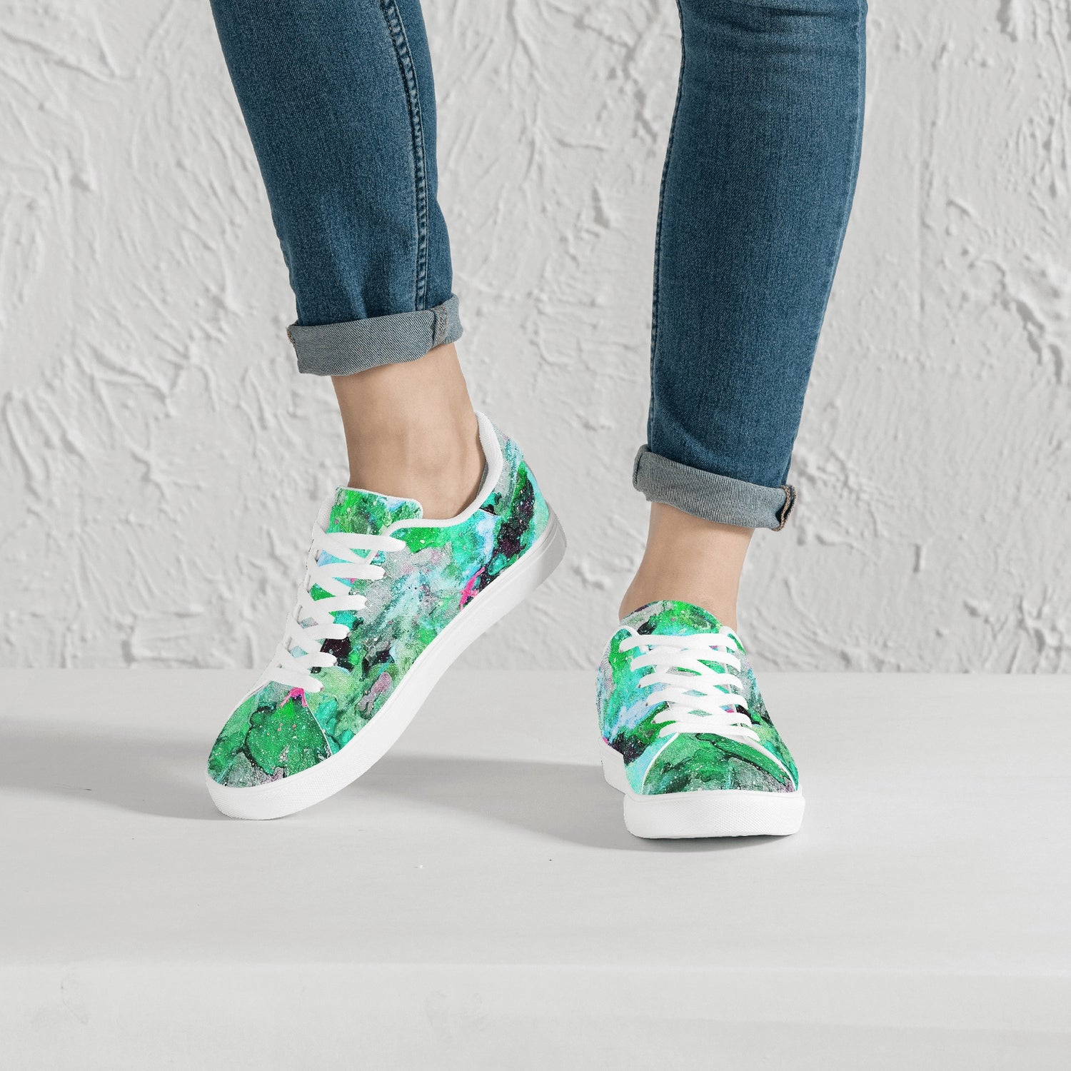 Galaxy Teal Womens Low Top Leather Sneakers